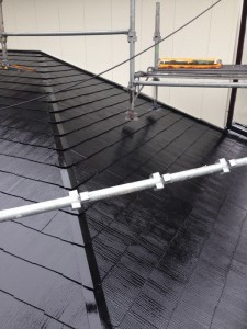 屋根の中・上塗りになります。しっかりと塗膜がつき、美しい艶が復活しました!