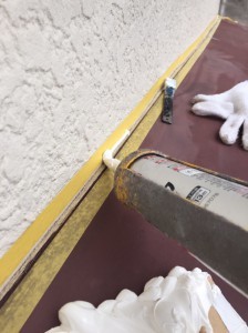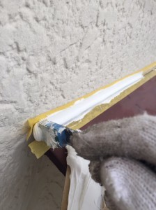 コーキング工事です。編成シリコンでたっぷりと、注入してあげます。