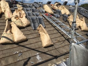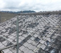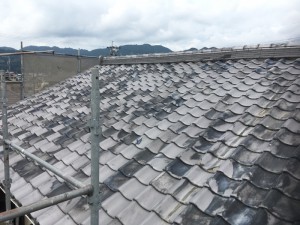 M様邸はご覧の通り、和瓦が乗っています。これを、軽いものに変えるのが一番の耐震工事にもなります。