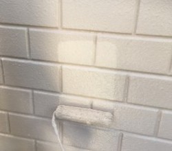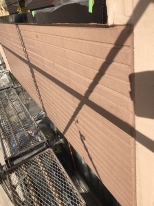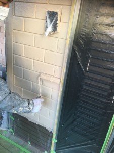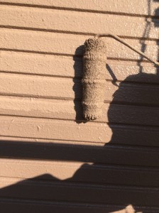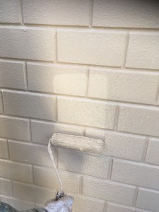 外壁の上塗りになります。垂れない程度にたっぷりと塗装していきます。