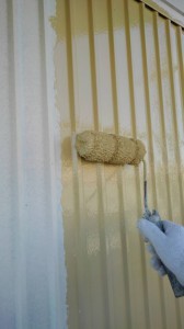 外壁の中塗りになります。2液型シリコン塗料になります。