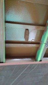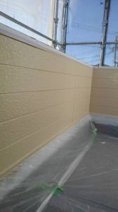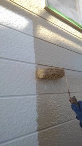 外壁の中塗りです。使用塗料は、2液型シリコン樹脂塗料となります。