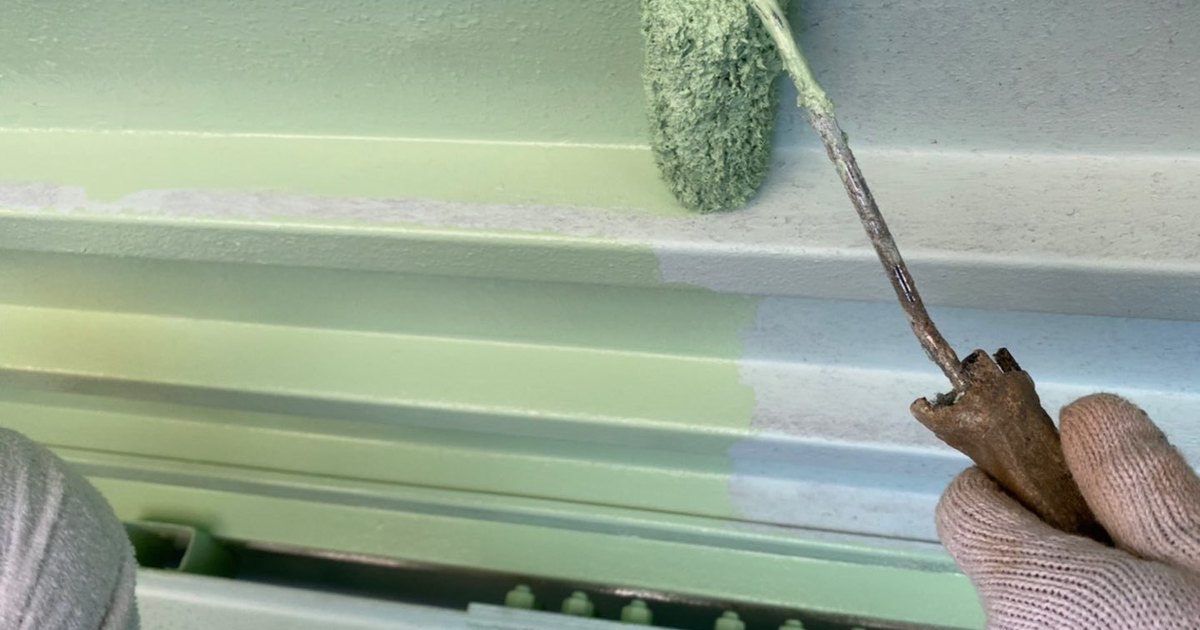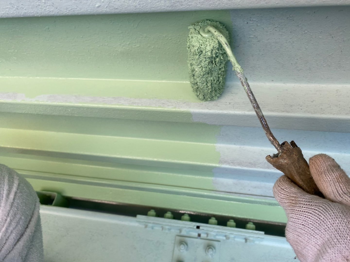 お茶屋さんらしい、明るい緑色に塗装していきます。