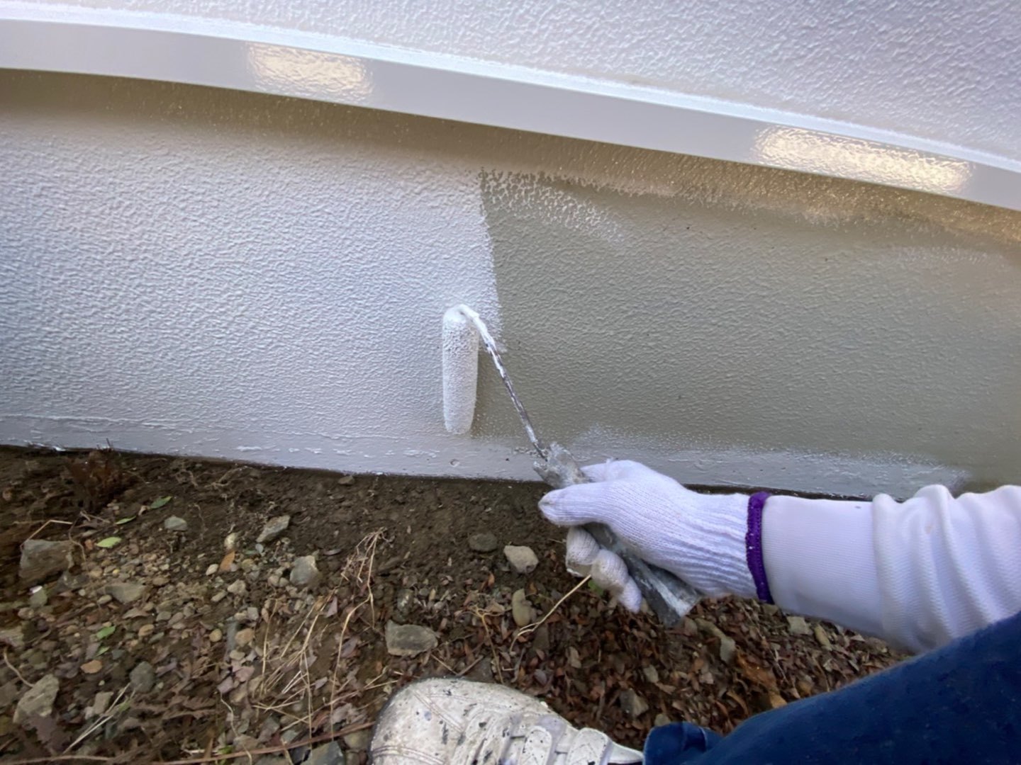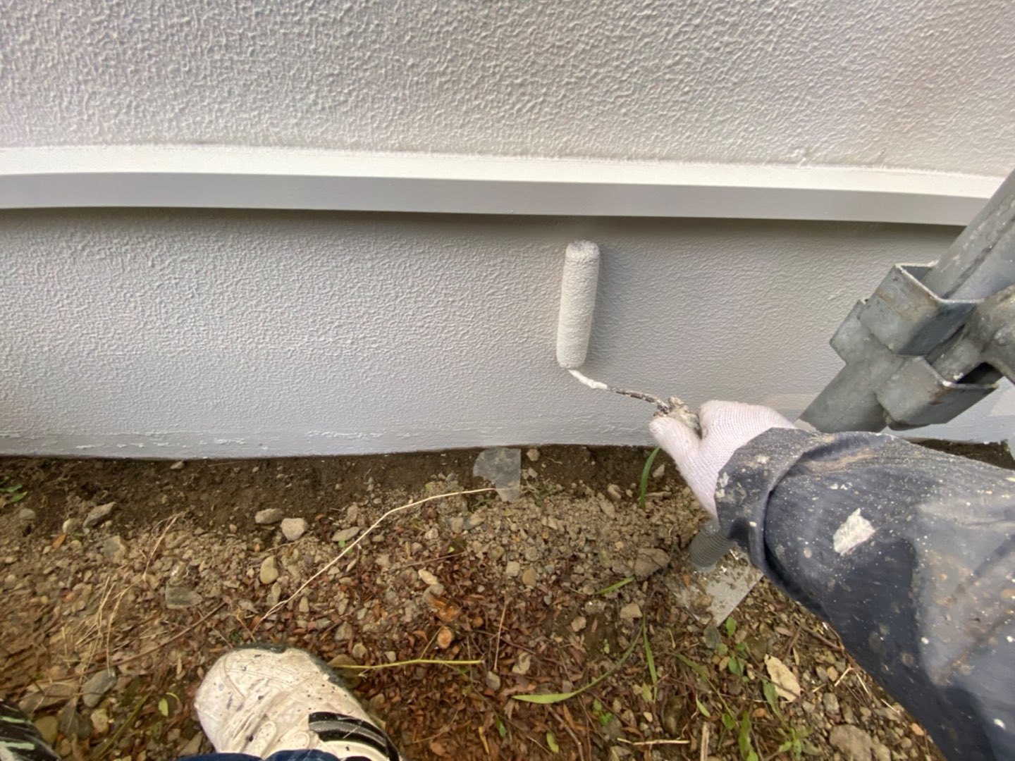 基礎部は、水を吸い上げ膨れてしまう恐れがあるので、膨れにくい塗料で塗装していきます。