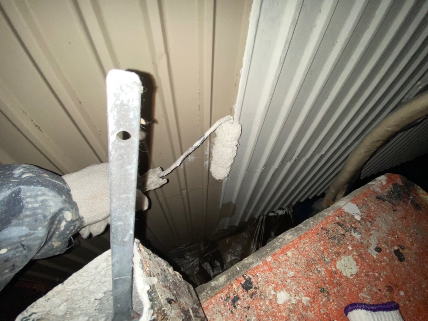 鉄部は錆止め、モルタル部は、微弾性フィラーを塗装します。