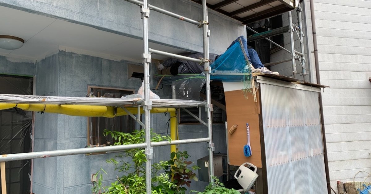 当社自慢の職人が、とても狭い箇所を塗装している写真です。