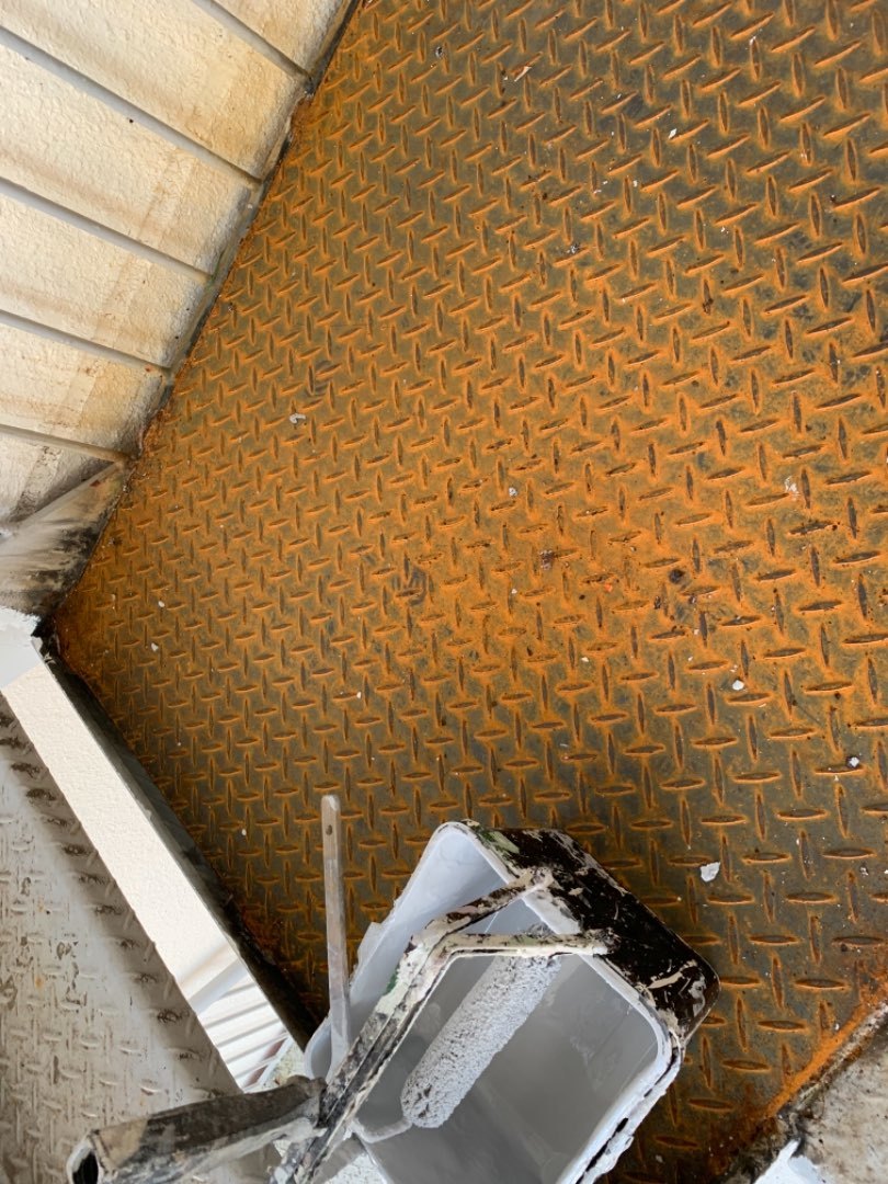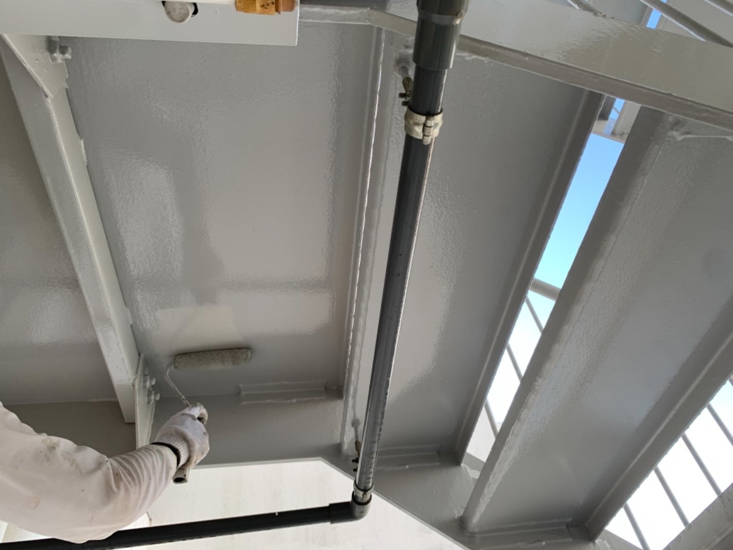 本日もいい天気になりました。今日の作業内容は、昨日下塗りした部分に色をつけていく作業(中塗りと...